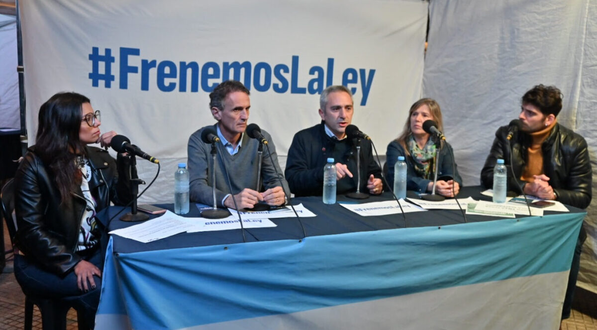 El ministro de Desarrollo de la Comunidad de la Provincia de Buenos Aires, Andrés Larroque, encabezó esta noche la vigilia en rechazo a la ley Bases que se lleva a cabo en la Plaza Congreso, y afirmó que este “es un momento parteaguas de nuestra historia”, porque de aprobarse la iniciativa impulsada por el gobierno nacional “podemos entrar en una Argentina muy distinta a la que conocemos, en una desfiguración de nuestro país”, y en ese sentido declaró que “es imprescindible» evitar su sanción.