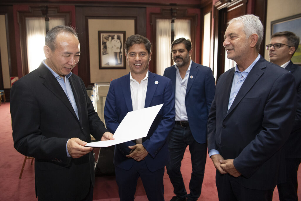 El gobernador de la provincia de Buenos Aires, Axel Kicillof, se reunió este sábado con el embajador de la República Popular China, Wang Wei, con el objetivo de potenciar la relación entre ese país y la Provincia. La república China es el principal comprador para la producción agropecuaria nacional y en este momento la relación comercial con Argentina atraviesa una crisis debido a la postura del presidente Javier Milei.